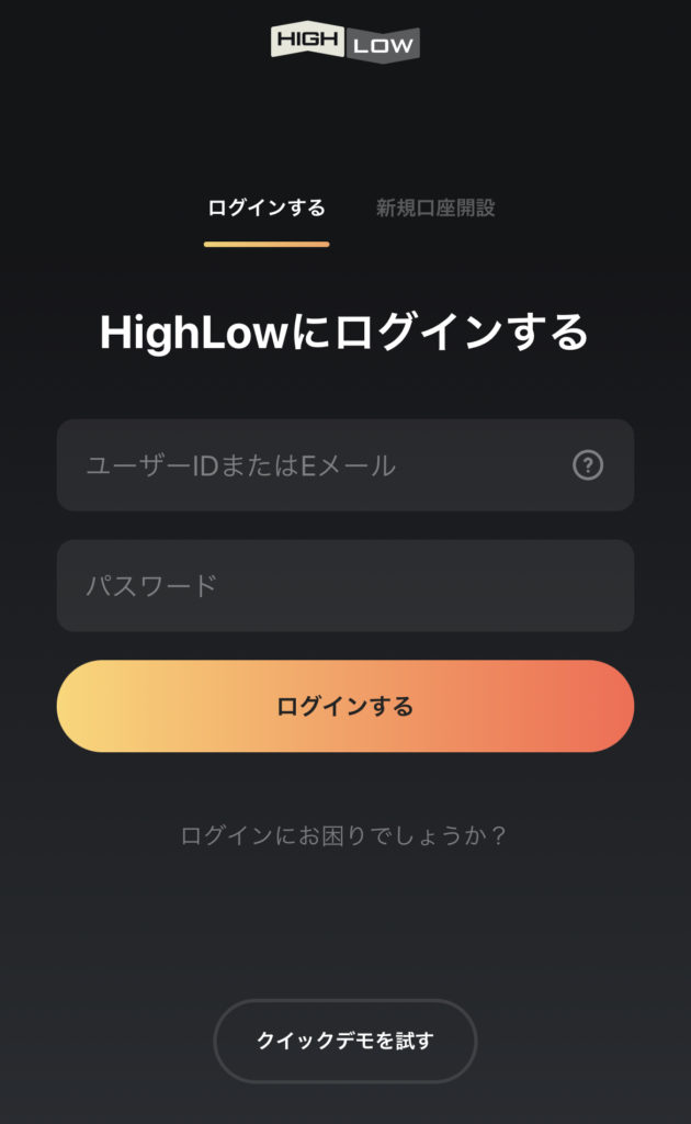 公式サイトのページは「https://highlow.com/」です。/highlow.com/の部分が含まれていない、にまたは//内違う文字が追加されているページは偽サイトである可能性が高いです。