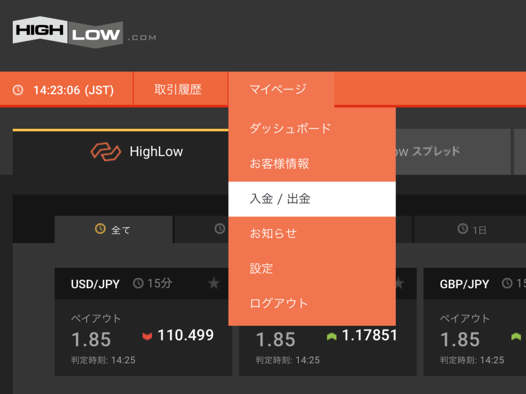 ハイローオーストラリアの出金履歴を確認する
